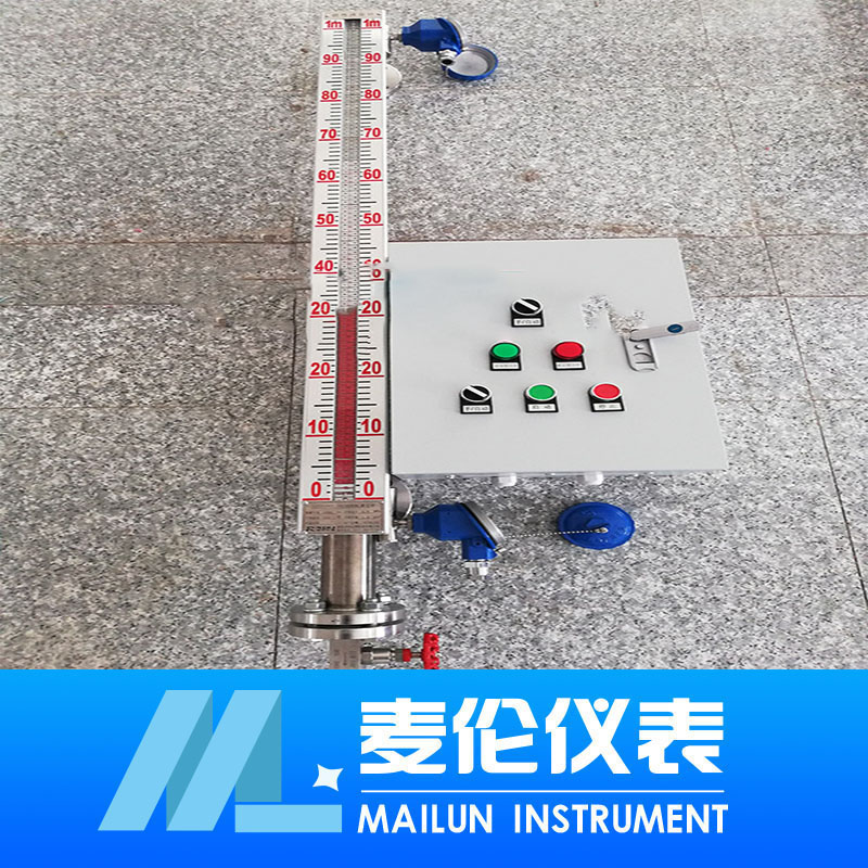 工作原理;高壓磁翻板液位計與被測容器連接形成一個連接器 , 因此,表體內的液位與被測容器內的液位完全一致 , 磁性浮子漂浮在儀表本體的液面上 翻板箱和磁性 - 電轉換傳感器 , 安裝在靠近桌體外側的位置。翻板箱中翻板柱的一側為紅色 , 另一側為綠色 , 柱配有圓柱形磁鐵。當被測容器中的液位發生變化 ,浮子隨著液位的上升和下降而上下浮動 由于磁耦合 , 同極排斥 , 異極吸引 ,磁浮子的薄壁圓筒配有磁環 , 環形磁鐵驅動活門盒中的活門同步翻轉并改變顏色。紅色表示氣相 , 綠色表示液相 , 因此,可以通過翻轉箱 同時翻轉顯示局部液位,磁 電傳感器還通過感應磁浮子位置的變化輸出 4~ 20 MA DC標準信號,完成液位的遠程顯示, 記錄, 報警聯鎖和自動液位調節
