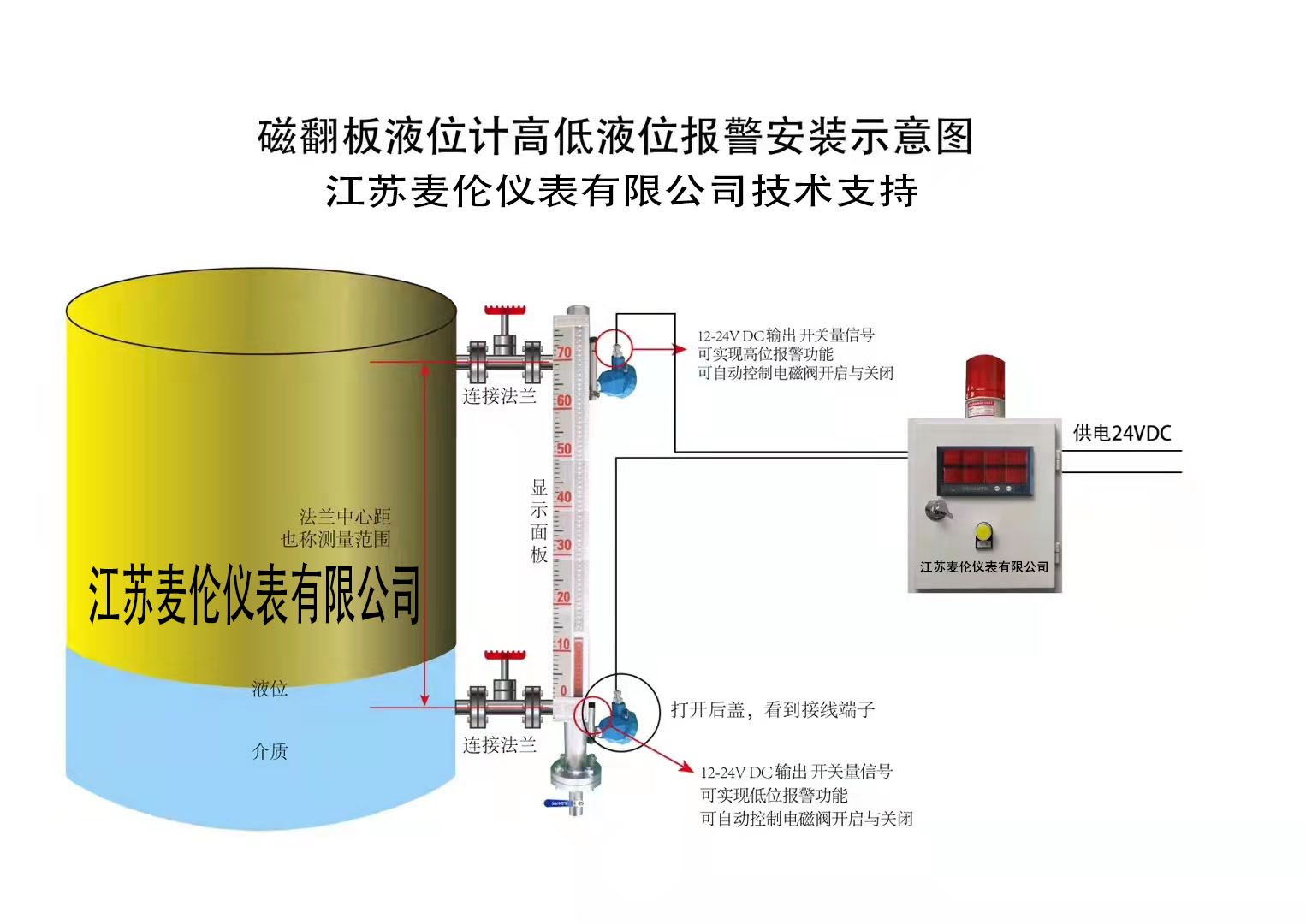 磁翻板液位計的結(jié)構(gòu)原理。當(dāng)被測容器中的液位上升和下降時,液位計主體管中的磁性浮子也會上升和下降,浮子中的永磁鋼通過磁性聯(lián)軸器,驅(qū)動紅,白翻柱翻轉(zhuǎn)傳輸至磁性翻轉(zhuǎn)柱指示器,以實現(xiàn)清晰的液位指示。通過內(nèi)置簧片觸點的開閉,實現(xiàn)電流或電壓信號的傳輸。磁性翻板液位計通常在出廠時通過模擬方法(本方法規(guī)范中未描述)進行調(diào)整,以確保其在供應(yīng)