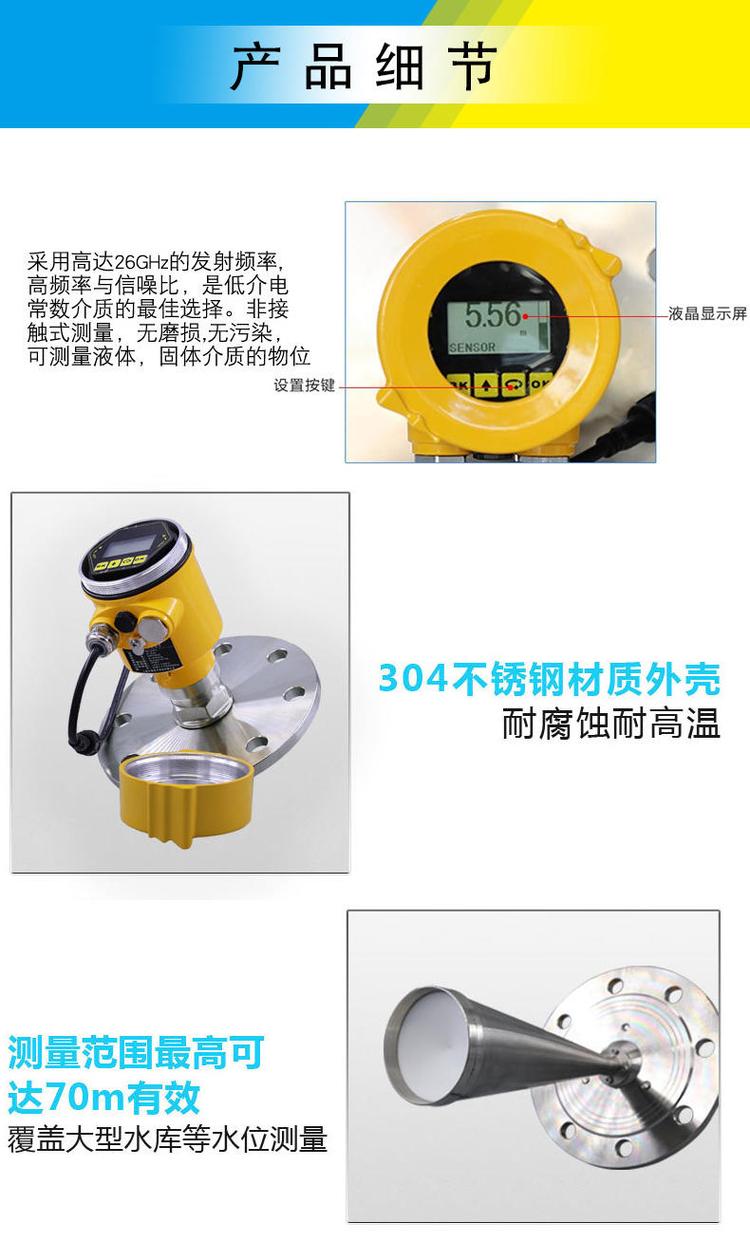 雷達物位計是一種**的雷達物位測量儀器,測量距離可達70米。天線進一步優化,新的fast微處理器能夠以更高的速率進行信號分析和處理,使儀器適用于固體材料、工藝容器或強粉塵容易結晶和冷凝的場合;雷達液位計功能設置:功能檢查;開始測量前,確保完成所有*終檢查,即安裝后檢查和連接后檢查;基本選擇;儀器上次通電時,根據儀器上顯示的信息選擇語言、基本單位和當前測量值。