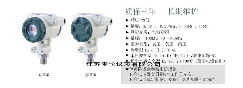 壓力變送器由傳感器發展而來,是一種輸出標準信號的傳感器。它是一種將壓力變量轉換為可傳輸的標準化輸出信號的儀器。輸出信號和壓力變量之間存在給定的連續函數關系,通常為線性函數.