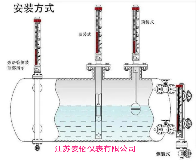 磁翻板液位計安裝在罐外或罐上方,用于指示和控制罐內的密封方式。可根據需要安裝排污閥。連接法蘭可接受一種定制液位高度的控制儀表。該指示器由磁性色片組成。當主體管中的磁性浮球隨液位升高時,色片翻轉顯示液位高度。磁性開關或遠程發射器也可以安裝在機身上管以輸出開關信號或模擬信號。適用于高溫、高壓、耐腐蝕等場合。它可以在本地顯示,也可以遠程控制。閥體管應由無縫鋼管制成,接頭應焊接有拉孔,內部無劃痕。該裝置可安裝在側面和頂部,機身下端密封。
