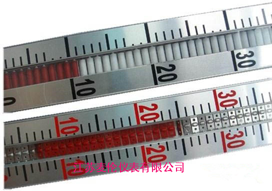 安裝磁翻板液位計的注意事項;磁翻板液位計主體周圍不允許磁性材料接近。禁止鐵絲固定,否則會影響磁翻板液位計的正常工作;如果用戶自行使用伴熱管道,必須選擇非磁性材料,如紫銅管。伴熱溫度應(yīng)根據(jù)介質(zhì);磁翻板液位計必須垂直安裝,磁翻板液位計和容器鉛管之間應(yīng)安裝一個球閥,以便于維護和清潔;介質(zhì)中不應(yīng)含有固體雜質(zhì)或磁性物質(zhì),以免堵塞浮子;使用前,用校正磁鋼;將零位以下的小球設(shè)置為紅色,其他小球設(shè)置為白色。