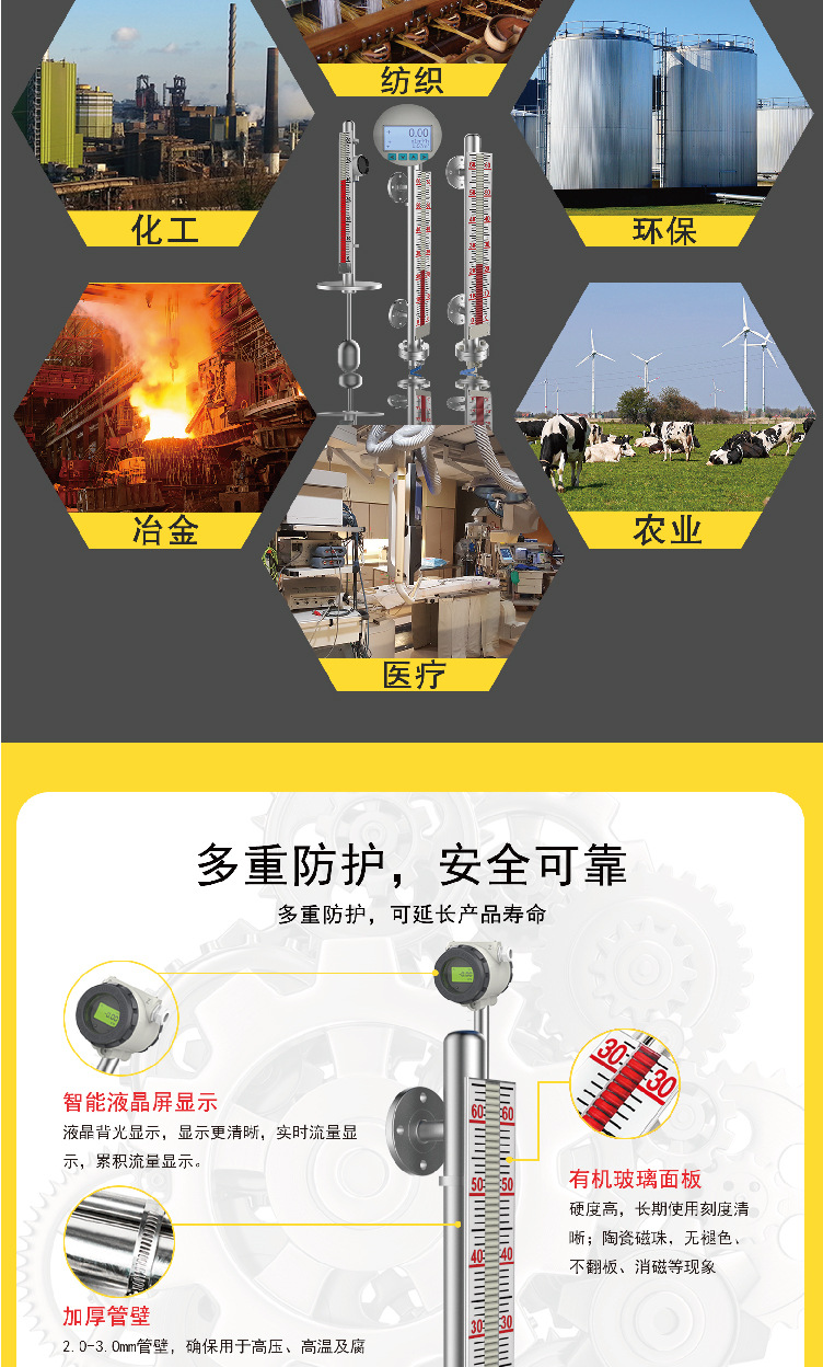 磁翻板液位計是罐區**使用的一種液位測量儀表。由于其測量精度高、安裝維護方便,在生產中得到了**的應用。基本型磁翻板液位計一般采用304或316L不銹鋼為基材。在很多情況下,為了有效控制液位的高低,保證生產安全,需要增加兩個高低開關量信號控制點。介紹了開關量信號控制點。