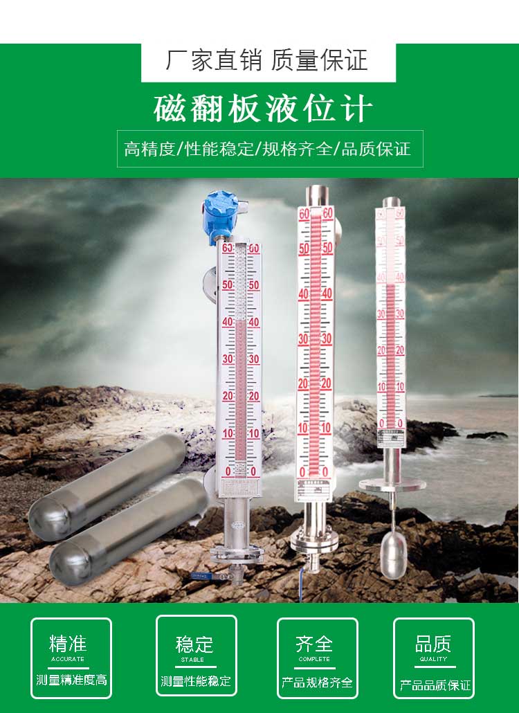 高溫高壓磁翻板液位計(jì)的應(yīng)用:高溫高壓磁翻板液位計(jì)采用獨(dú)特的散熱方式散熱,使儀器的工作溫度得到有效控制,有效避免了磁性元件因溫度過(guò)高而退磁的發(fā)生。高溫高壓磁翻板液位計(jì)拓寬了磁翻板的使用范圍,主要用于測(cè)量高壓高溫下的液位,更**、可靠地滿足電力、供熱、供氣等行業(yè)的液位測(cè)量要求。在實(shí)際應(yīng)用中,一般需要根據(jù)液體化學(xué)性質(zhì)的不同,選用不同材質(zhì)的浮子。根據(jù)液體密度的不同,選擇不同體積和重量的浮子與之匹配,以達(dá)到更好的測(cè)量精度。