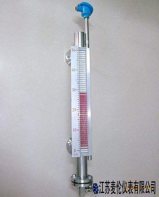 磁性翻板液位計儀表的上下閥裝有法蘭接頭,與容器連接構成連通器,由玻璃管內直接指示容器內的液位。結構形式為"普通型"-D"保溫型"-W兩種,保溫型裝有加熱或冷卻裝置。該裝置加熱時可用蒸汽,蒸汽壓力不大于0.6MPa,冷卻時可用循環水,這樣可以調節介質的流動性能,保溫套接管尺寸為G1/4內螺紋。在上下閥內裝有鋼球,當玻璃因意外事故破壞時,鋼球在容器內壓力的作用下自動密封,防止容器內的介質繼續外流。在儀表上端針型閥上裝有限塞螺釘,可供放氣之用,下端針型閥上也裝有限塞螺釘,可供放空、取樣、排污、清洗