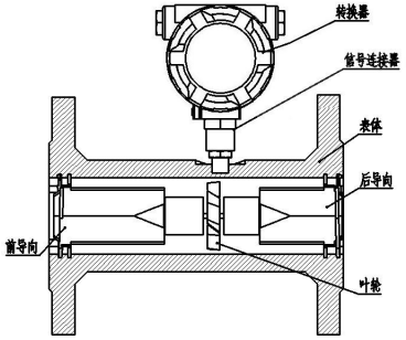 塑料渦輪流量計主要由表體、前導向、后導向、葉輪、信號連接器和轉換器等組成。