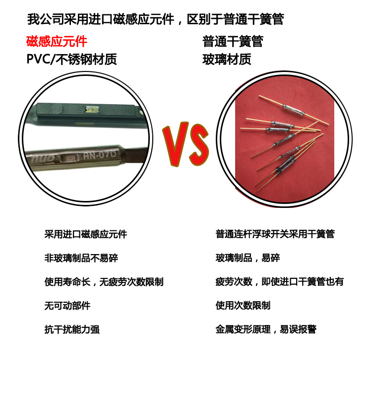 在密閉的金屬或塑膠管內,設計一點或多點的磁感應元件,然后將管子貫穿一個或多個,中空而內部裝有環型磁鐵的浮環,并利用固定環,控制浮球與磁感應元件在相關位置上,使浮球在一定范圍內上下浮動。利用浮球內的磁鐵去吸引磁感應元件的接點,產生開與關的動作,作液位的控制或指示。