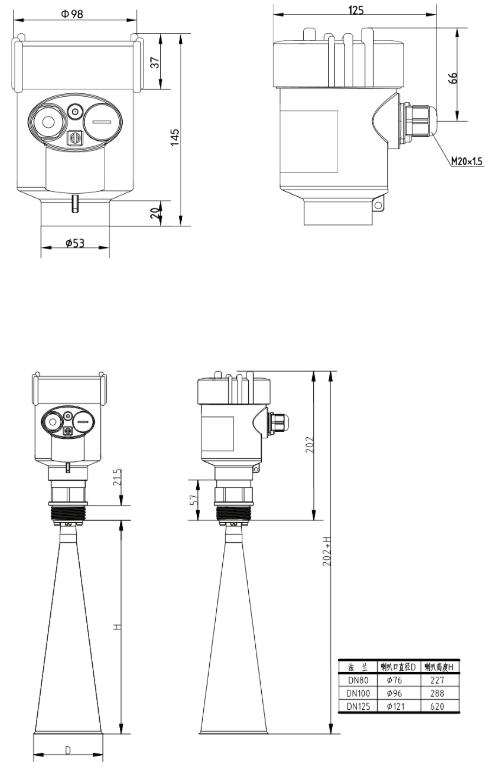 三、雷達物位計,液位計結構尺寸