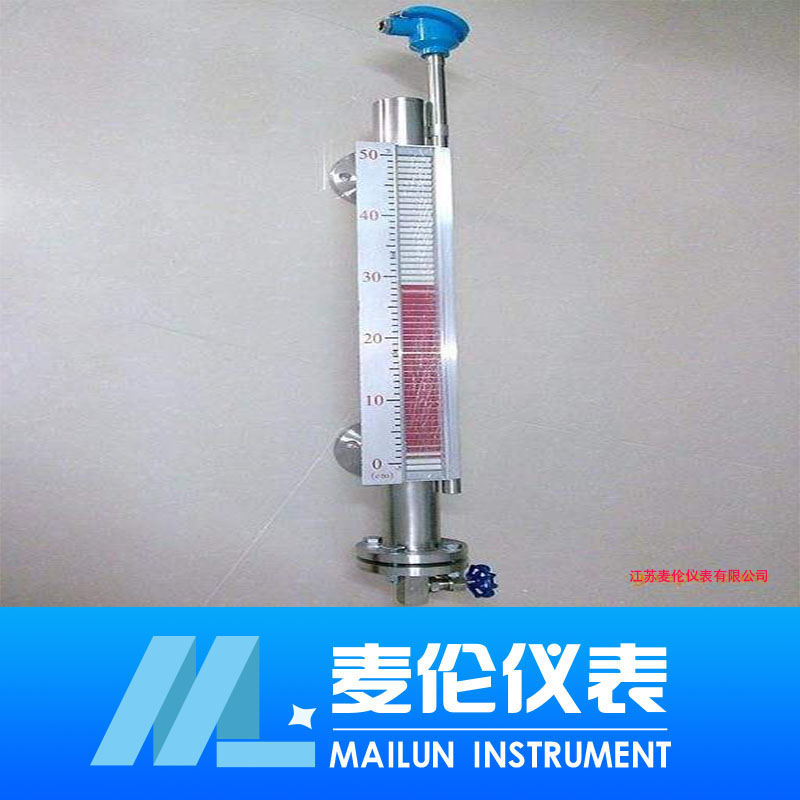 11、當配有遠傳配套儀表時需做到如下幾條: 遠傳配套儀表上感應面應面向和緊貼主導管; 應使遠傳配套儀表緊貼液位計主導管,并用不銹鋼抱箍固定(禁用鐵質); 遠傳配套儀表零位應與液位計零位指示處在同一水平線上; 遠傳配套儀表與顯示儀表或工控機之間的連線zui好單獨穿保護管敷設或用屏蔽二芯電纜敷設; 接線盒進線孔敷設后,要求密封良好,以免雨水、潮氣等侵入而使遠傳配套儀表不能正常工作,接線盒在檢修或調試完成后應及時蓋上。 磁翻板液位計它是由本體、翻板箱(由紅、白雙色磁性小翻板組成)、浮子、法蘭蓋等組
