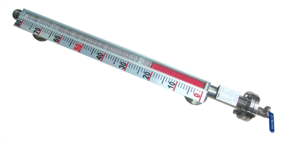 磁翻板液位計一般安裝在容器外側或頂部,即其安裝方式可選擇側裝或者頂裝。對于封閉式的容器而言,可根據現場需求加裝排污閥。磁翻板液位計的測量主管一般采用無縫鋼管,且連接管處采用無縫焊接,使其密封性大大增強,十分適合用于高溫、高壓、耐腐蝕,甚至危險場合的測量。磁翻板液位計的面板具有度數直觀、醒目、可視角寬等特點,其結構緊湊合理、安全可靠,無“跑、冒、滴、漏”等現象,還具有維護簡便、維護成本低等優點。磁翻板液位計所具有的指示功能無須額外供電,即當電力供應發生故障時,也絲毫不會對其工作效果產生影響,可謂經濟環保的理想型液位檢測儀表。可在測量主管上加裝磁開關,使其輸出開關信號或模擬量信號,更加便于控制液位高度。磁翻板液位計有側裝和頂裝兩種安裝方式,無論哪種方式都可以配置干簧管遠傳變送器及磁開關,由此達到液位計遠距離傳輸,及實時就地顯示、監控的效果,測量方便快捷,大大提高作業效率。與磁開關和干簧管遠傳變送器配套使用的磁翻板液位計又被稱為遠傳型磁翻板液位計。